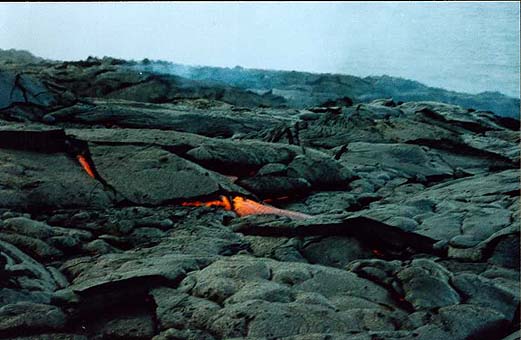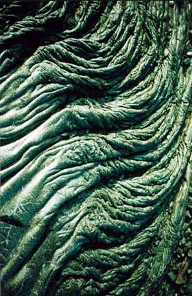 Lavagestein.Über erkaltete Pahoehoe-Lavaströme gehts dann weiter