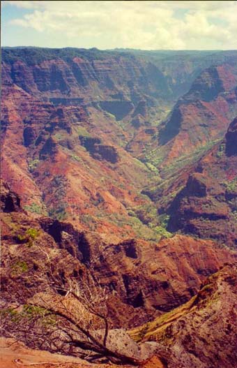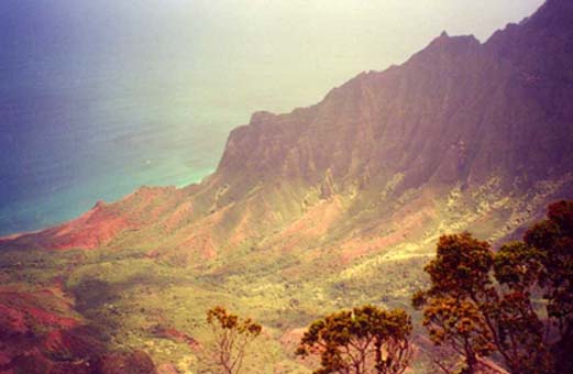 Das richtige Breakfast gibts dann zu unser aller Überraschung an Bord und besteht aus einem riesigen kalten Buffet. Das erste Mal für uns gehts dann auch in einer kleinen Bucht an der NaPali Coast zum Schnorcheln, wieder nicht ohne lustige Einweisung vom Kapitän. Traumhaft farbige Korallen, Fische und Wasserschildkröten sind zu sehen, sodaß es uns leid tut keine Unterwasserkamera zu besitzen. Zurück an Bord erwartet und schon der Lunch, ein noch größeres kaltes Buffet. Beim Essen sehen wir im Vorbeifahren die schroffe Küstenlinie der NaPali Coast und fühlen uns wie in den Film Jurassic Park versetzt. Delphine begleiten in riesigen Schwärmen das Boot, w Wieder zurück an Land - die Crew drückt noch jeden Getränkedosen in die Hand - gehts wieder an unseren hoteleigenen Strand wo wir den Rest des Tages verbringen. |