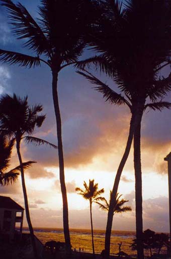 Wake up call um 6h, wir checken bereits um 7 h früh aus, bringen unser Leihauto zurück und frühstücken am Airport. Abflug von Maui um 10.10 / Ankunft auf KAUAI/Lihue um 10.45 Kauai (“Garteninsel”) ist die viertgrößte Insel, ca. 53km breit und 40km lang. Es leben ca. 54.000 Menschen hier. Entgegennahme des nächsten Leihautos. Auf der Suche nach unserem Hotel "Kauai Coconut Beach" (4 Nächte), fahren wir glatt dran vorbei, da wir es vor lauter Palmen nicht sehen. Den Rest des Tages verbringen wir am Strand. Die Strömung im Meer ist sehr stark, man muss aufpassen, daß man nicht abgetrieben wird und gegen ein scharfkantiges Riff stößt. Am Abend besuchen wir den Coconut Market Place, eine Art Einkaufszentrum mit vielen kleinen Läden, wir entdecken eine Espressobar, das wird unser Stammcafe für die nächsten Tage. Kurtis Verkühlung ist schlimmer geworden. |